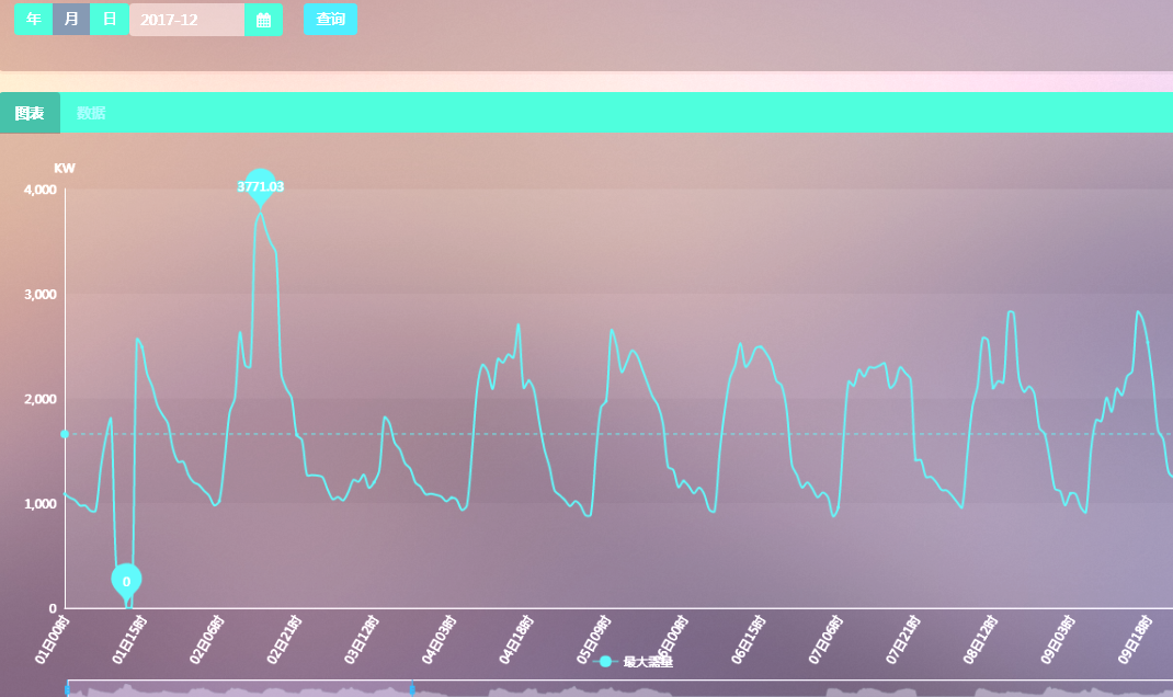 根據對該企業監測負荷曲線一段時間后,發現該企業每月固定的一兩次尖峰值是由大功率設備開啟造成,因此,對該企業大功率設備的開啟時間進行調整,尖峰負荷下降400KW,對最大需量值進行調整,每月節省基本電費12800元。